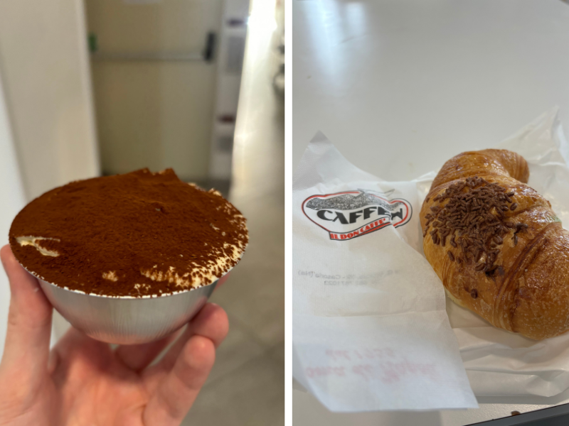 BREAKFAST. Chocolate croissant from a local cafe and an espresso