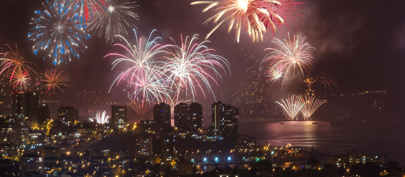Chileans love a party on New Year’s Eve and toast to a Feliz Año Nuevo, continuing on into the wee hours of the morning – as late (or early) as 8am. First, though, there’s usually a family dinner with plenty of leftovers for the next day. Traditional drinks like cola de mono are enjoyed alongside champagne, beer, pisco and more. Like Argentinians, they often head to the coast for fireworks on the beach. At midnight, Chileans eat 12 grapes to bring economic fortune, make a wish for each month, and predict how the new year will be depending on the acidity of the grapes. They might wear yellow underwear for good luck in love (even better inside out), take an empty suitcase for a walk around the block for travel in the new year, eat lentils for economic success, or place a $1,000 peso in the right shoe. Wearing new clothes will bring big changes, and a gold ring in your champagne flute brings good luck. A kiss when the clock strikes 12 will eliminate loneliness in the coming year.